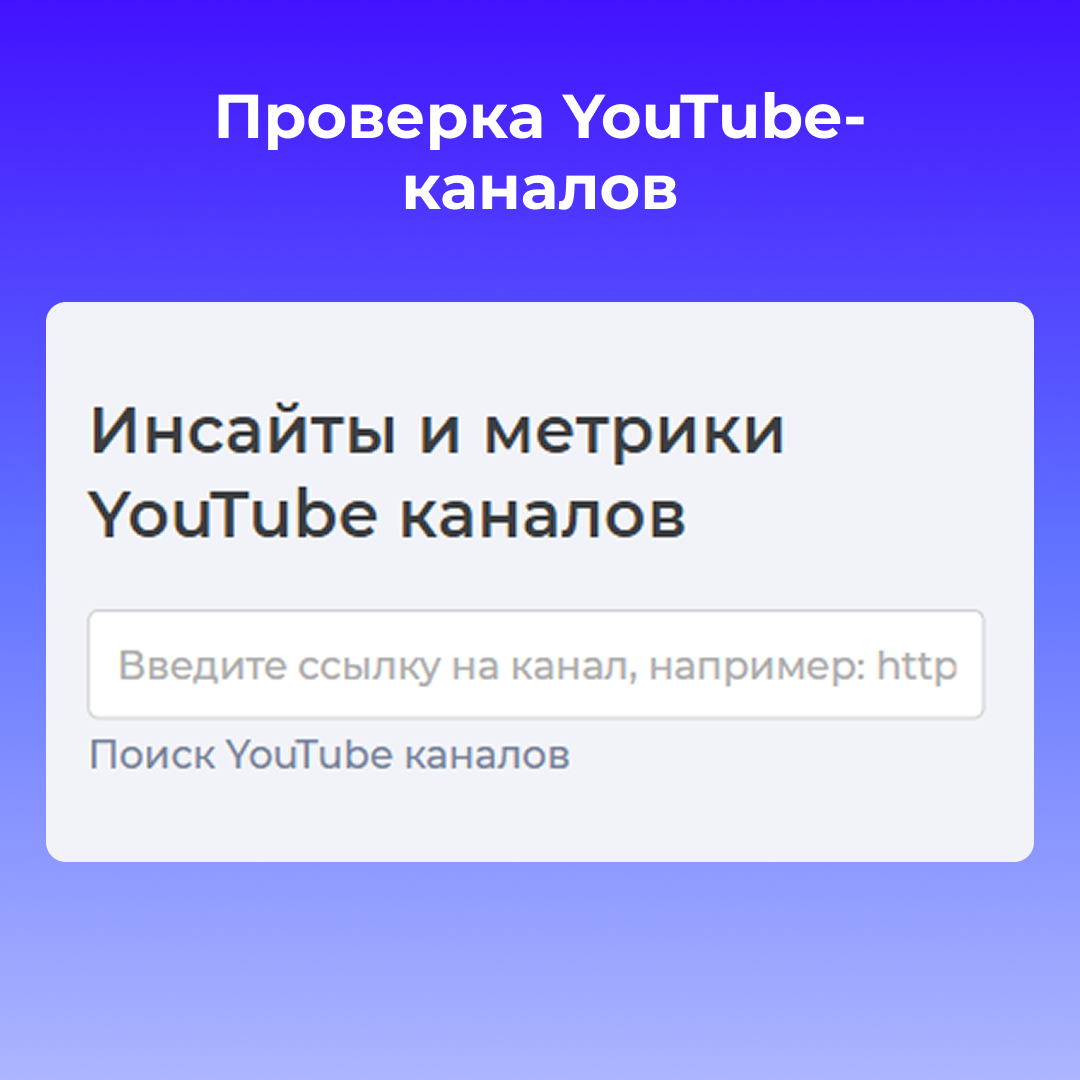 Предоставляет детальную аналитику по любому YouTube-каналу. Просто вставьте ссылку на любой канал и проверьте его качество в нашей программе.